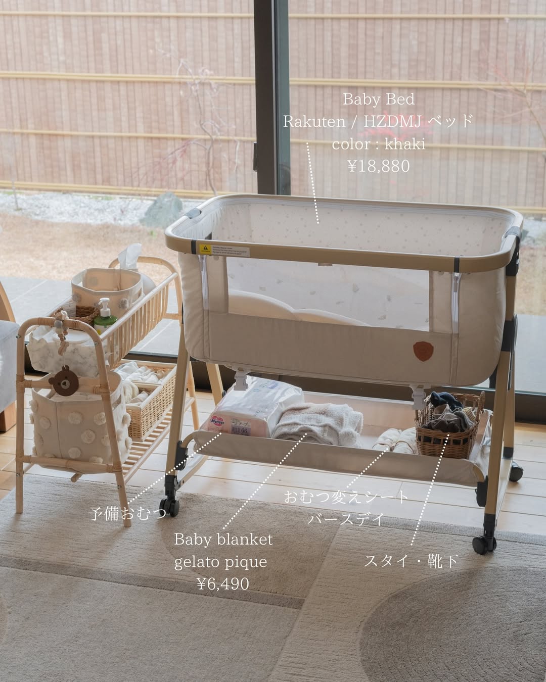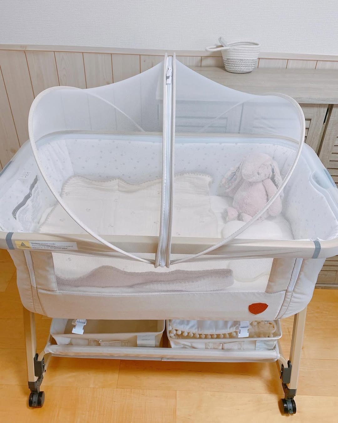 ミニベビーベッド ゆりかご 蚊帳 キャスター付き 高さ調節可能 通気性 吐き出し防止