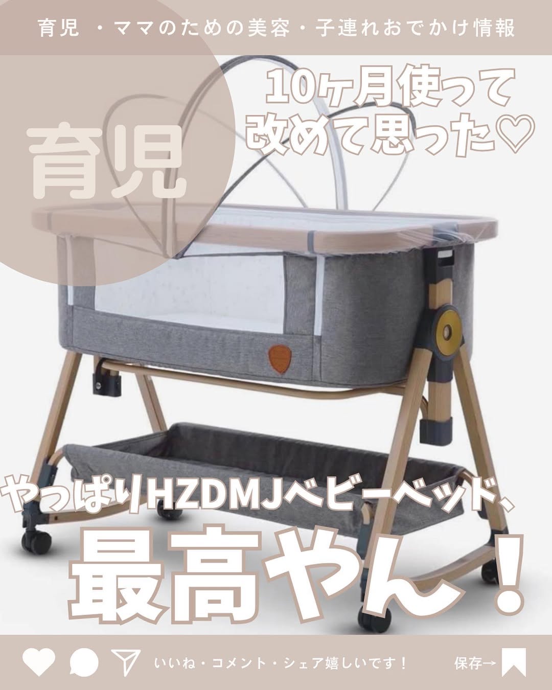 HZDMJ ベビーベッド 折りたたみ 添い寝 新生児用(0〜24ヶ月) 高さ6段階・消音昇降付き