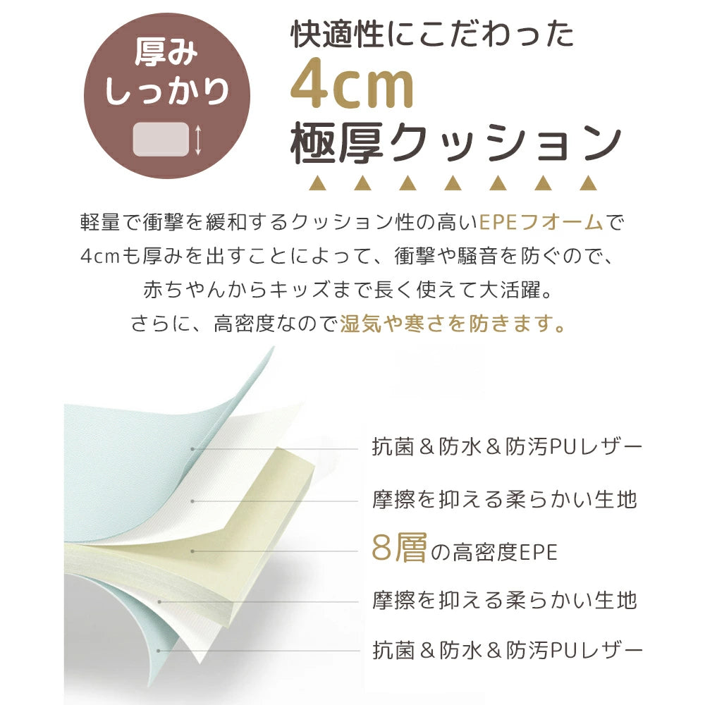 プレイマット 赤ちゃん 抗菌 防水 ベビー 折りたたみ 4つ折り 厚み4cm ベビーマット クッションマット 防音 サークルマット 軽量